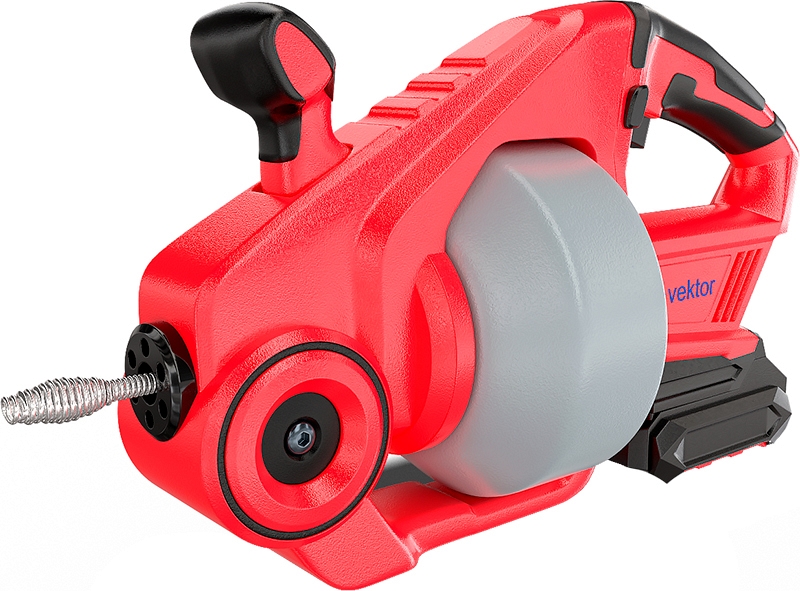 Аккумуляторная прочистная машина для канализации Vektor 6001L (Вектор 6001Л) – мощная ручная механическая электрическая машина барабанного типа c автоподачей троса вперед и назад для прочистки канализационных труб Ø 20 – 75 мм, длиной до 7,6 м, наружной и внутренней трубопроводной системе, с легкостью справляется с тяжелыми труднодоступными засорами в канализации, удаляет жировые наросты, иловые отложения, песчаные засоры, корни деревьев, стекла, кирпичи, бетон и т.д.