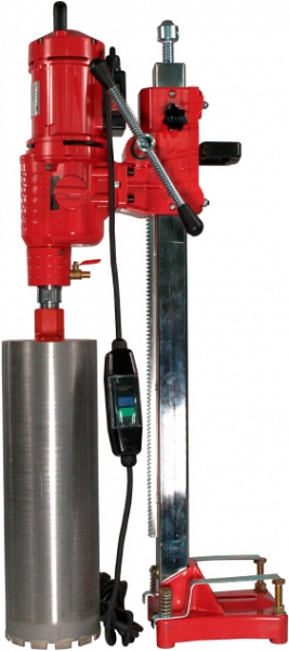 Алмазная сверлильная установка Voll V-Drill 250 (Волл В-Дрилл 250) с мощным двигателем 4,58 кВт предназначена для сверления отверстий Ø 15 – 250 мм в бетоне, железобетоне, включая железобетон с высокой степенью армированности, кирпичной и каменной кладке, граните, мраморе, под прямым углом, с подачей воды. Идеально подходит для строительных и монтажных организаций и фирм, занимающихся монтажом систем отопления, водоснабжения, вентиляции, кондиционирования, а также прокладкой электрических сетей, слаботочных систем. Благодаря компактной конструкции и относительно малому весу обеспечивается легкая транспортировка, а также монтаж и демонтаж установки на рабочем месте.