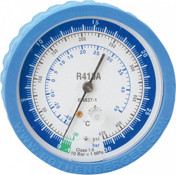 - Ударопрочные манометры низкого и высокого давления для различных хладагентов – 3 различных манометра Pulse-free, класс 1.6, 80 мм: универсальное использование для кондиционеров со всеми распространенными хладагентами, а также в диапазоне высокого давления для R410А