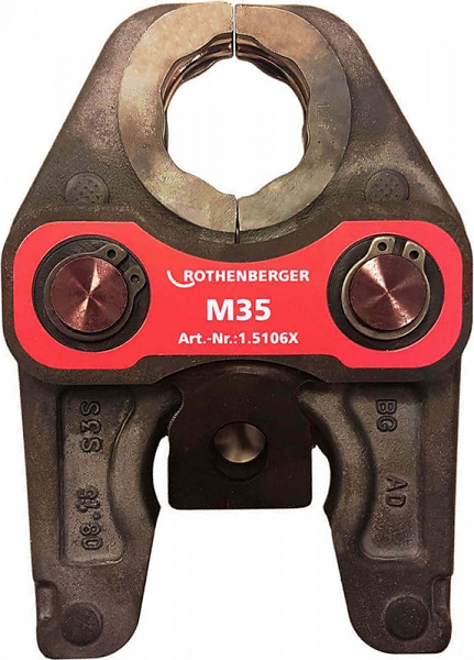 Пресс-клещи Rothenberger Standard M35 (Ротенбергер Стандарт М35) проверенного качества, ориентированные на пресс-фитинговые и трубные системы обжима медных, нержавеющих стальных труб и труб из цветных металлов Ø 35 мм различных производителей. Предназначены для аккумуляторных и электрических гидравлических радиальных прессов Rothenberger Romax 4000 / 3000 AC / AC Eco.