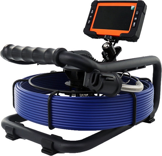 - Головка камеры Ø 12,8 × 21 мм и проталкиваемый кабель Ø 4,8 мм × 30 м из стекловолокна, подходящие для труб Ø 32 – 65 мм, длиной до 30 м