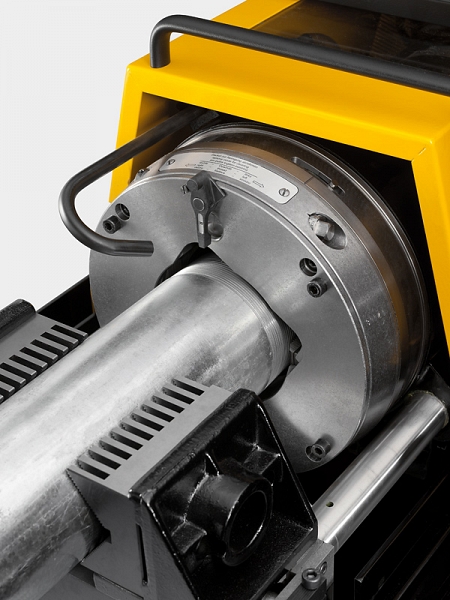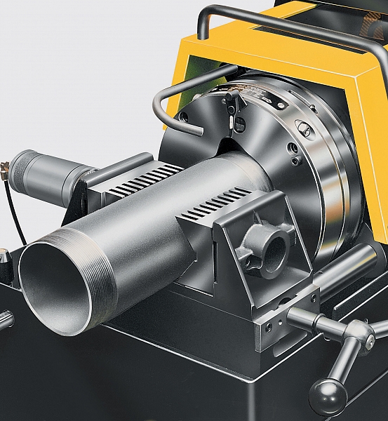 Надежные, без перекосов, универсальные самоцентрирующиеся тиски для всего диапазона резьб со специальными зубчатыми кулачками (1/4" – 3/4", 1" – 4"). На выбор, ручные тиски или пневмо-гидравлические тиски (рабочее давление 6 бар). - Автоматическое охлаждение и смазка: