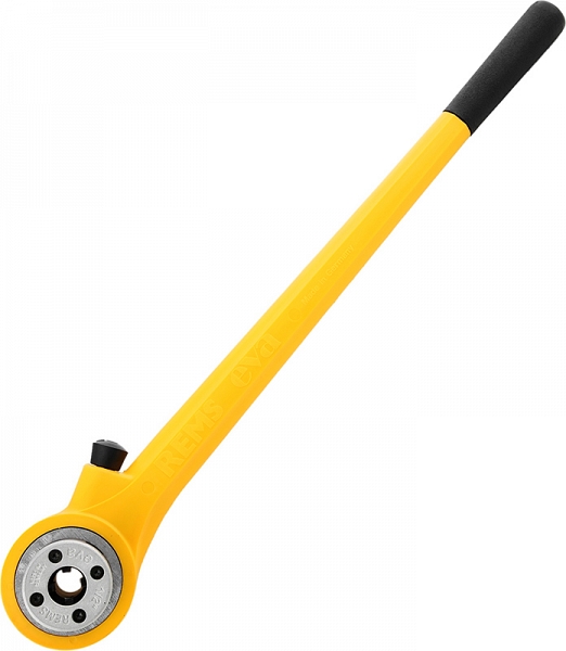Всего один храповый рычаг для всего диапазона резки как до 1 1/4", так и до 2". Только один вид маленьких, компактных, быстросменных резьбонарезных головок и только один вид резьбонарезных плашек. Один вид резьбонарезных головок подходит ко всем клуппам Rems и соответствующим клуппам иных производителей. - Храповый рычаг: