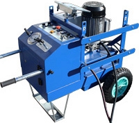 - Усовершенствованная модель гидравлической машины для стыковой сварки полиэтиленовых труб Uponor Infra PT 1600. Отличия заключаются в том, что хомуты центратора открываются и закрываются с помощью первого гидравлического привода, а в закрытом положении второй гидравлический привод их запирает, создавая необходимое усилие для испраления овальности трубы. Это намного удобнее, чем поднимать верхние половинки хомутов краном, а затем притягивать их гайками вручную. Кроме того, на обеих сторонах центратора установлены роликовые упоры для труб, высота которых также регулируется гидравлическим приводом.