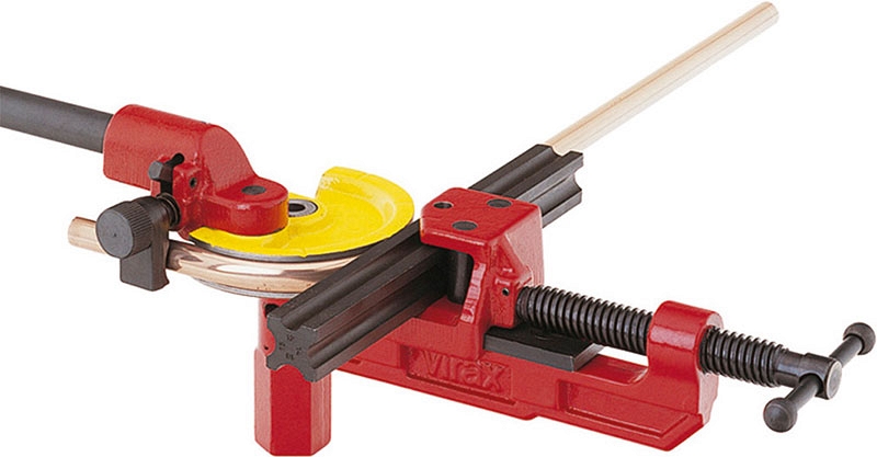 Трубогиб ручной со свободной направляющей и универсальными сегментами Virax 10-12-14-16-18-20-22 мм (Виракс 10-12-14-16-18-20-22 мм) – верстачный настольный рычажный трубогиб для гибки медных, алюминиевых, латунных, тонкостенных стальных и нержавеющих, изолированных труб Ø 10, 12, 14, 16, 18, 20, 22 мм, толщиной стенки 0,8 – 1,5 мм, на угол до 180°, с креплением на верстаке или в тисках.